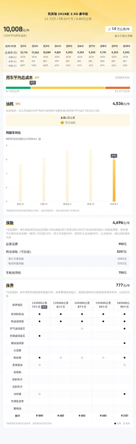 在选择购买车辆时,除了初始购车成本,还应考虑日常使用中的各项开支。基于对这款车的大数据分析,我们估算了其年均综合用车成本。帮助您从更长远的角度规划财务。