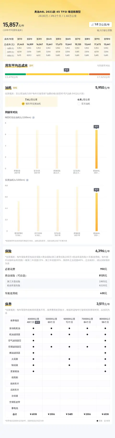在购买二手车时,除了考虑购车成本外,还需要预留一部分资金用于日常用车开支。我们统计了这款车的平均用车成本,以及升级套件后的用车成本,给大家做个参考。