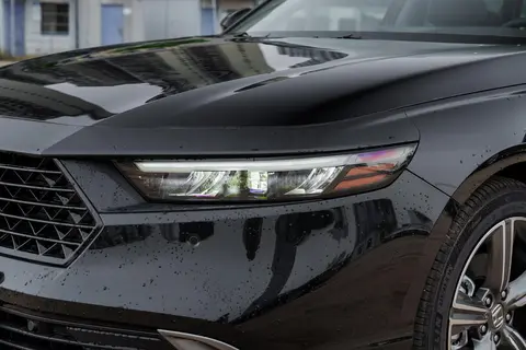 车身侧面设计延续了品牌一贯的流畅与优雅,简洁而有力的腰线设计从前大灯延伸至尾灯,营造出一种连贯而修长的视觉效果,使得整个车身看起来更加干净利落。溜背式车顶设计不仅提升了车辆的运动气质,还赋予了车身一种低矮而宽阔的姿态,在视觉上增强了车辆的动感。窗框周围的镀铬饰条是点睛之笔,它们不仅增添了一丝光泽感,提升了车辆的档次感,还体现了雅阁对于细节的精致处理。