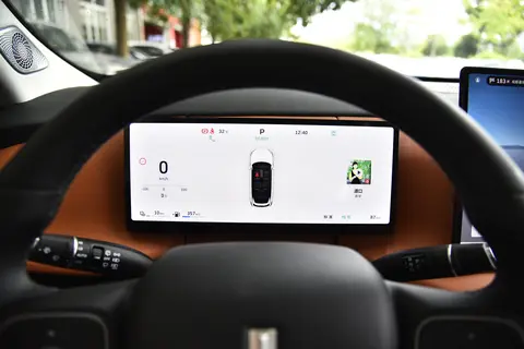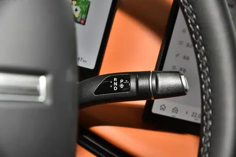 内饰方面也没有采用新能源车型的极简设计,依旧透发着自己的味道;橙/黑色拼接配色带来视觉冲击力,而且用料材质上乘且面积广泛,触手可及的柔和亲肤;就连顶棚内部也加入了一层海绵覆盖,触感较好。采用双幅式可加热方向盘和怀挡式切换挡位,中控台配备了12.3英寸仪表盘、29英寸AR-HUD抬头显示和双15.6英寸一体双联屏,分辨率达2.5K,画面显示清晰,色彩鲜艳,而且还具有防蓝光护眼效果,降低视觉疲劳。