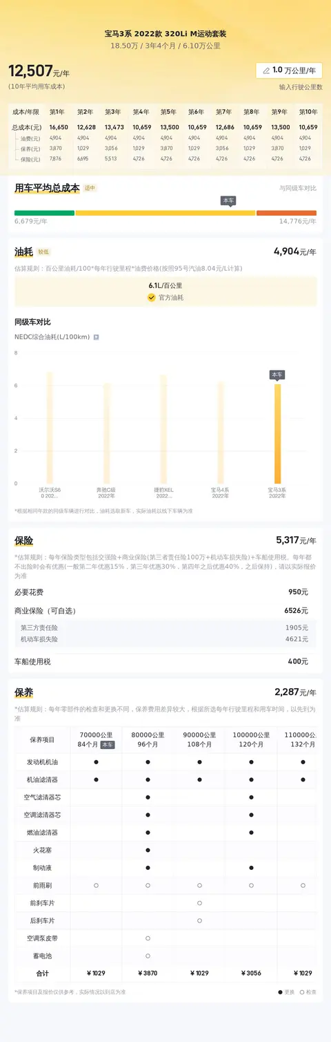 购车之后,车辆的日常使用成本也是需要考虑的,根据估算,这辆车的油费+保养+保险约13558元/年,具体费用根据车主的实际使用情况而定。