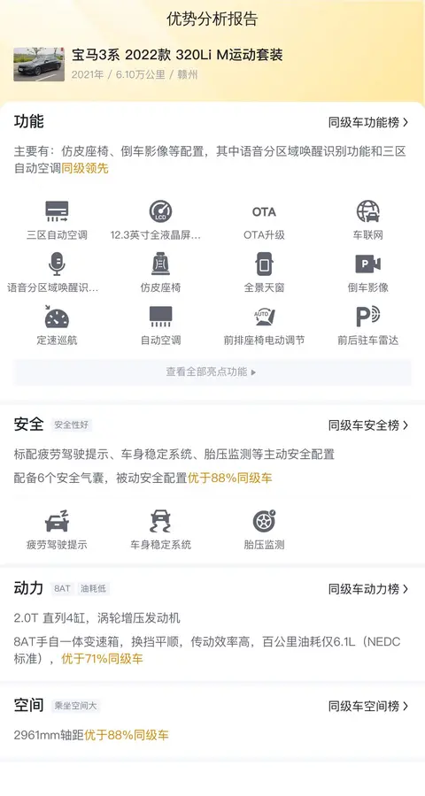 总的来说,宝马3系2022款320Li M运动套装是一款集豪华、性能与舒适性于一体的轿车,车况良好,售价合理。希望本篇文章可以帮助您做出明智的购买决策。