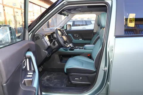 12.8英寸的悬浮式中控大屏是内饰设计中的一大亮点,充分展示了现代汽车科技的进步。该屏幕不仅支持丰富的车机功能,还搭载了高通骁龙8155芯片,确保了操作的流畅性与顺畅性。在导航、音乐播放及其他应用的使用中,用户体验得以大幅提升。此外,副驾驶前方的扶手设计亦令人称道,它不仅彰显了越野车的野性之美,还为副驾驶乘客提供了更加舒适的乘坐体验,体现了对细节的关注与关怀。这些设计元素共同营造了一个既科技感十足又注重舒适性的车内空间。