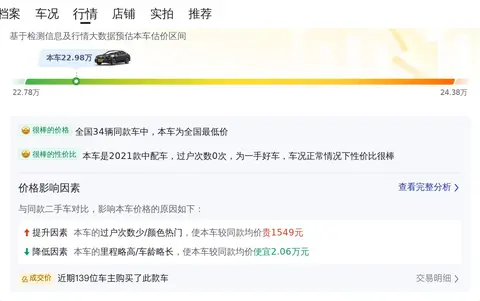 综上所述的新车含税价、用车成本、市场行情、优势分析、同款比价等数据仅供参考。在配置部分,因为二手车非标品,车辆可能会存在配置改装的情况,具体车况信息需要线下结合车辆实际情况进行综合参考。