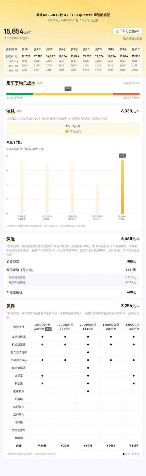 这辆车的用车成本在前几年适中,但随着车龄增长,用车成本会变高,十年平均用车成本约为16173元/年,当然,这也跟车主的用车习惯有很大的关系。
