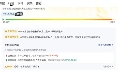 综上所述的新车含税价、用车成本、市场行情、优势分析、同款比价等数据仅供参考。在配置部分,因为二手车非标品,车辆可能会存在配置改装的情况,具体车况信息需要线下结合车辆实际情况进行综合参考。