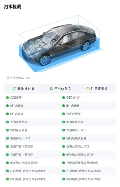 二手车不同于新车,在日常使用中难免会发生一些小意外。比较常见的就是车辆外观覆盖件划伤、剐蹭、划痕、喷漆修复、钣金修复、凹陷、变形等,对于此类小瑕疵,虽然在检测项中会被查出来判定为瑕疵项,但整体并不影响车辆的安全性。总结说一下,如果车辆通过了重大事故、泡水、火烧检测检测,那么说明这辆车的整体车况没有大问题,这个您放心就行。