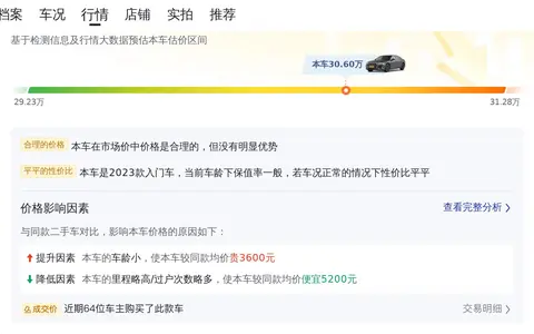 市场行情方面,奥迪A6L 2023款改款 40 TFSI豪华动感型的二手车价格区间为26.45万至31.28万。而本车的报价为30.60万,虽然在合理区间内,但相较于同款车型,价格偏高。此外,根据大数据分析,该车未来三年的折价较少,这也从侧面印证了奥迪A6L保值率较高的特点。