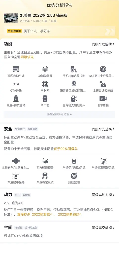 在评估一辆车时,其功能配置是关键因素之一。本节将深入分析并总结这辆车的功能配置,同时将其与同级别车型进行比较,以突出其优势和特色。希望这能帮助您更好地理解和评价这辆车。