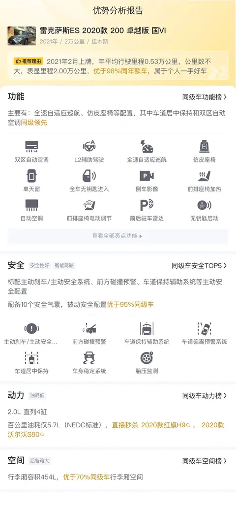 综上所述的新车含税价、用车成本、市场行情、优势分析、同款比价等数据仅供参考。在配置部分,因为二手车非标品,车辆可能会存在配置改装的情况,具体车况信息需要线下结合车辆实际情况进行综合参考。