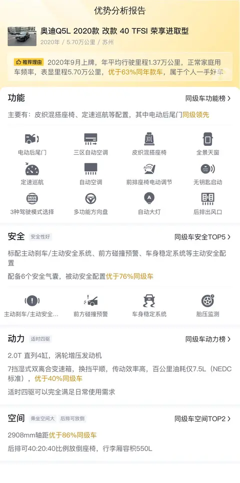 综上所述的新车含税价、用车成本、市场行情、优势分析、同款比价等数据仅供参考。在配置部分,因为二手车非标品,车辆可能会存在配置改装的情况,具体车况信息需要线下结合车辆实际情况进行综合参考。