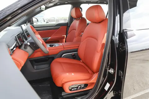 eπ008的车身尺寸是5002毫米长、1972毫米宽、1732毫米高,轴距达到了3025毫米,这些数据让车内空间表现得不错。前排座椅用了皮质包裹,坐垫填充得比较柔软,支撑性也不错。身高180厘米的人坐进去,头部和腿部的空间都挺宽裕,活动不会觉得局促。第二排是两个独立座椅,还配了扶手和腿托,长时间坐着也很舒服。身高180厘米的乘客坐在第二排,头部和腿部空间都没问题,坐着挺自在的。第三排座椅适合身高170厘米以下的人短途乘坐,头部和腿部空间稍微紧凑,但短时间用用还行。后备厢空间根据需要可以调整,第三排座椅竖着时空间够日常买买菜,放倒后空间一下子变大了,能放不少行李,适合长途出行。整体来说,这车的空间表现对家庭用户挺友好。