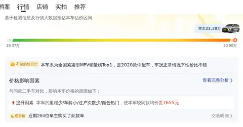 别克GL8 2020款 ES陆尊 653T 舒适型,新车含税价为32.79万,二手车报价是22.38万,相当于开了4年左右便宜了10.41万。