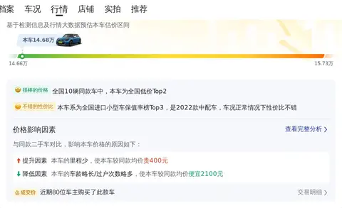 市场行情也是决定这款车价值的重要因素。目前,这款车的二手车行情大致在13万至16万之间。考虑到它的保值率和稳定的市场价格,这款车在未来几年内的价格预计会相对平稳。作为一款受欢迎的车型,它在二手车市场上也保持着良好的流通性,让你在需要出售时更加安心。