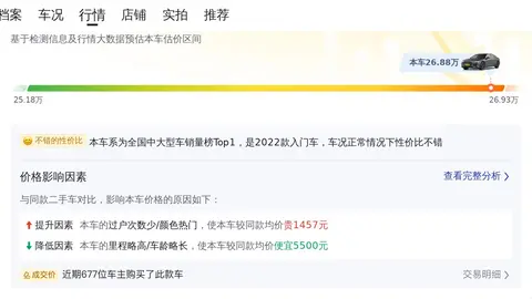 目前,该车的二手车报价为26.88万元。这里需要指出的是,车辆的实际成交价将取决于多个因素,包括使用年限、行驶里程、车辆保养状况等,而实际车况才是决定成交价格的关键要素。