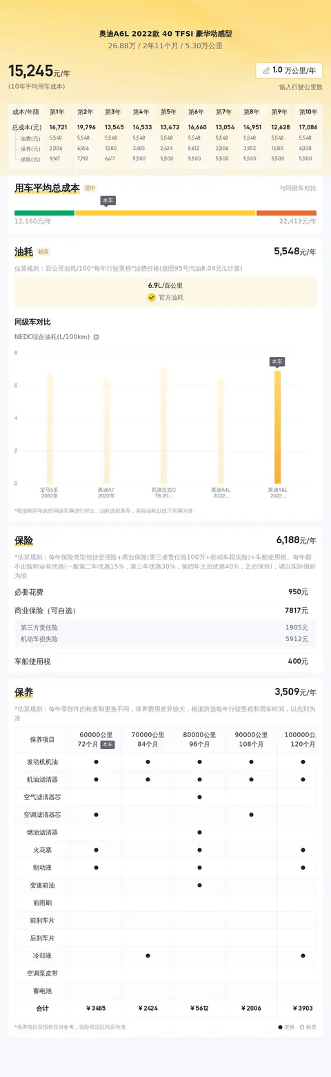 关于用车成本部分,根据估算,这辆车的年均综合用车成本在1.5万元左右。这里要说的是,这个费用是一个预估数值,跟车主的实际用车场景和使用强度会有直接关系。