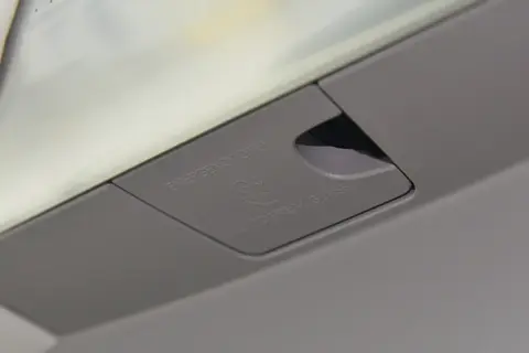 在主驾驶位置,这辆车设计了一个应急破窗功能。打开盖板,内部有一个拉线。在应急时刻,拉动拉线,内部撞针就会击穿车窗边缘,使得整块玻璃碎裂,便于车内人员逃生。也正因为此,这辆车的前车窗玻璃用了单层玻璃,没有使用双层夹胶玻璃。