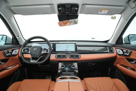 捷途山海L7的内饰设计充分考虑了家庭用车的需求,通过精心挑选黑橙双拼色的配色和材质,营造出一个既温馨又现代的车内环境。中控台和门板大量使用触感柔软细腻的环保仿皮材质,提升了内饰的质感,环保和的材料更加安全,尤其适合有小孩的家庭使用。