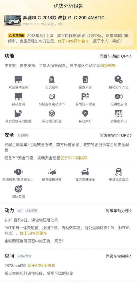 奔驰GLC(图片|配置|询价)可以说是一辆能够驰骋在城市与郊外的豪华SUV。它凭借出色的外观设计、宽敞舒适的内部空间以及卓越的越野性能,成为了众多消费者心中的理想之选。而今天我们要介绍的主角是奔驰GLC 2018款 改款 GLC 200 4MATIC,接下来让我们一起来欣赏一下这辆二手车的具体情况吧~