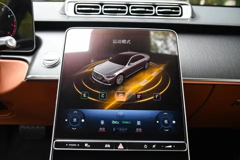 奔驰S级的车内采用了两块尺寸为12.3英寸、分辨率1920×720的液晶屏连在一起,组成仪表盘和中控台可视界面,空调按键被集中在中控台四个出风口下沿,整个多媒体/车辆控制区域在扶手前方。