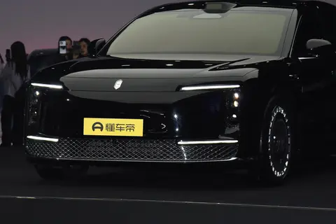 中网为镀铬蜂窝状,保险杠两侧有矩阵模组,车顶配备激光雷达,整车气场十足。