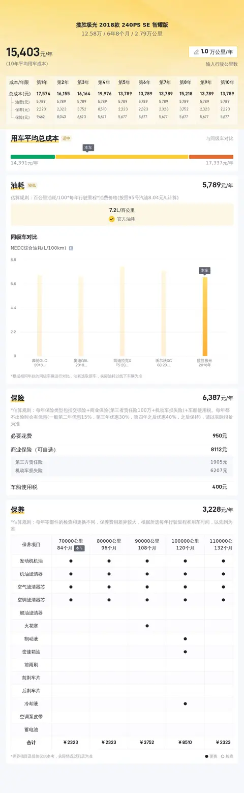 综上所述的新车含税价、用车成本、市场行情、优势分析、同款比价等数据仅供参考。在配置部分,因为二手车非标品,车辆可能会存在配置改装的情况,具体车况信息需要线下结合车辆实际情况进行综合参考。