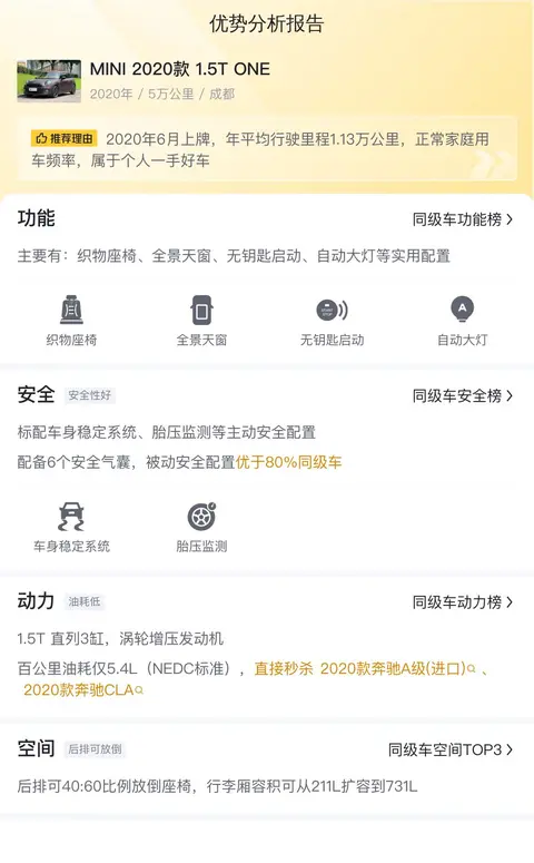 这辆二手MINI一年的用车成本大约是9728元,当然,这还得看你怎么用,有的车主可能就喜欢给自己的爱车打扮得漂漂亮亮的,或者跑的里程数多,那花的钱自然也就多了。但一般来说,这个预算是够用了。毕竟养车不易,且行且珍惜啊!