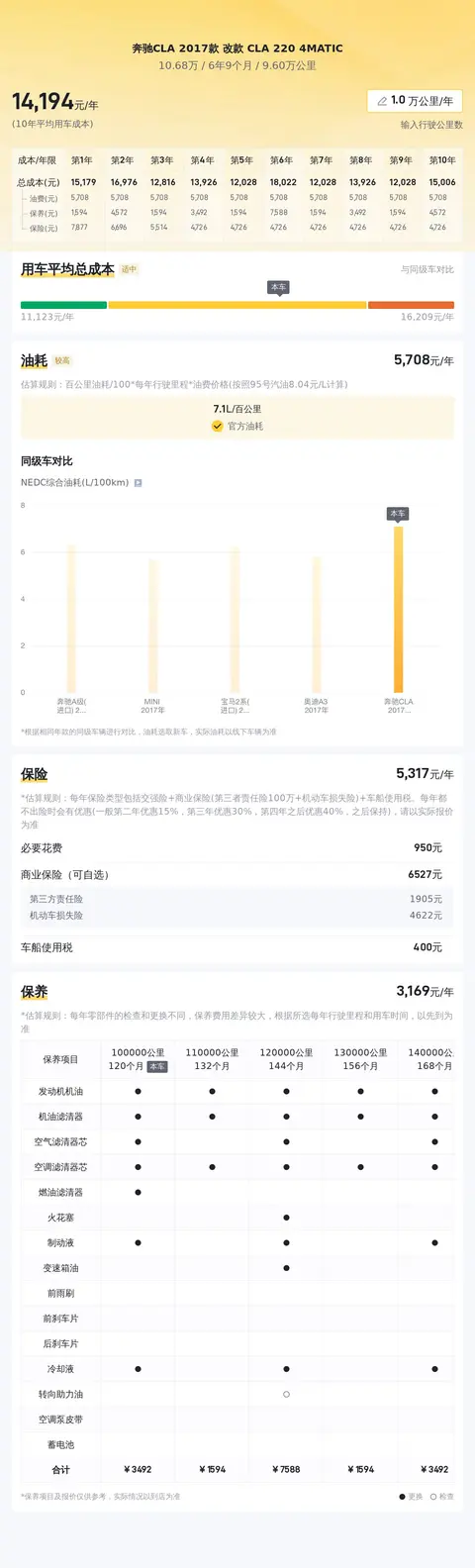 按照懂车帝对这辆车的分析,这辆车的用车成本一年大约在1.4万元左右。