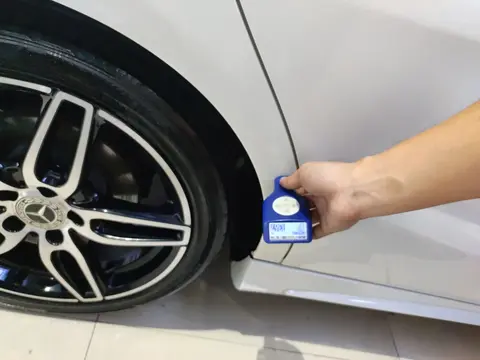 在外观检测部分,这辆车的表现一般,可能是前任车主的驾驶技术一般,或者对车辆使用并不是很爱惜。在外观部分有多处瑕疵,具体的瑕疵项分别为:右前门钣金修复、右后门钣金修复、左前轮毂剐蹭、右前轮毂剐蹭、左后轮毂剐蹭、右后轮毂剐蹭、右后翼子板钣金修复、左后视镜剐蹭、右后视镜划痕、左后尾灯水渍、右后尾灯水渍、左下边梁外饰板刮伤、右C柱外侧喷漆修复。下面我们将为您展示这些瑕疵项的实拍图。