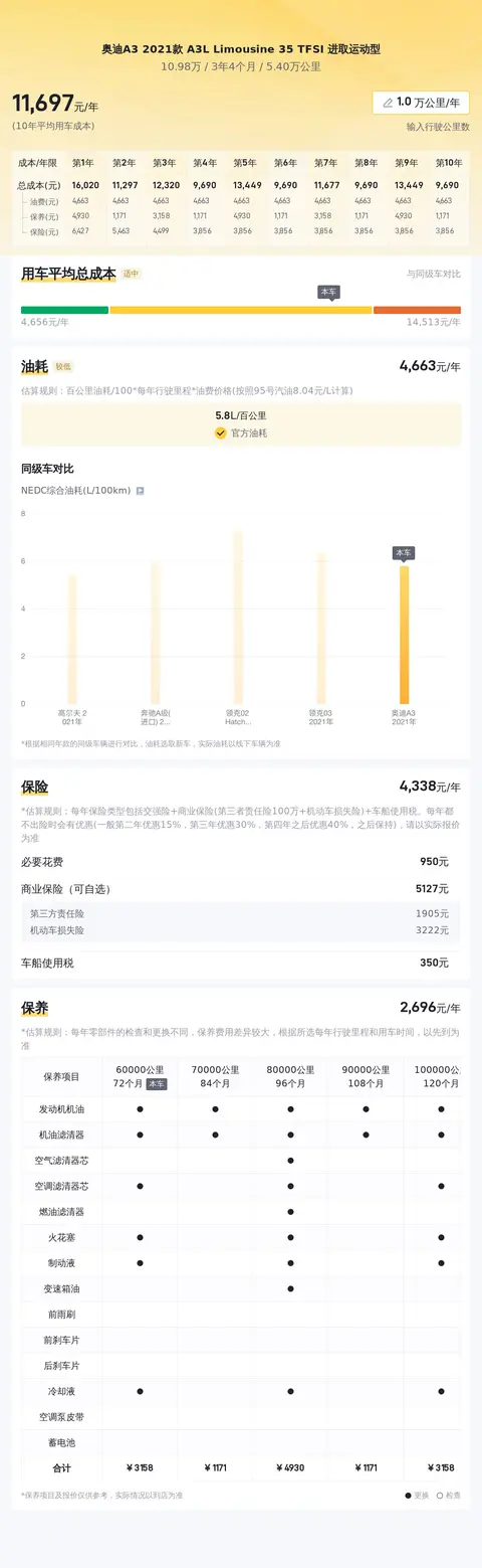 在用车成本方面,根据估算,这辆车的年均综合用车成本约为1.2万元,其中包括油费、保养费、保险费等。值得注意的是,实际费用可能会因个人驾驶习惯等因素而有所差异。