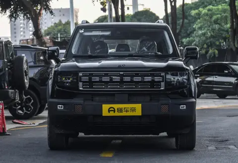 外观采用了具有超高辨识度的“方盒子”设计,硬朗的线条散发出满满的越野气息。前脸大部分面积被横向的进气格栅所覆盖,看起来十分稳重,品牌LOGO位于中间,彰显了品牌独有的风格魅力。四方形的大灯组和车头相互呼应,车身整体性很强。贯穿式的日间行车灯,内置LED灯源,夜晚点亮之后照明效果更佳。前保险杠有一圈黑色的饰板包围着,为车头增添了一丝层次感。