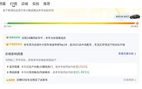 影响二手车定价的因素众多,包括车龄、里程、车况保养状况等,实际车况才是敲定成交价格的决定性要素。根据大数据综合评估,这辆车当前的售价区间在市场合理范围内,但相较于同款车型,其价格略显偏高。潜在买家在做出购买决策之前,建议进一步考察车辆的整体状况,并结合自身需求与预算进行慎重考量。