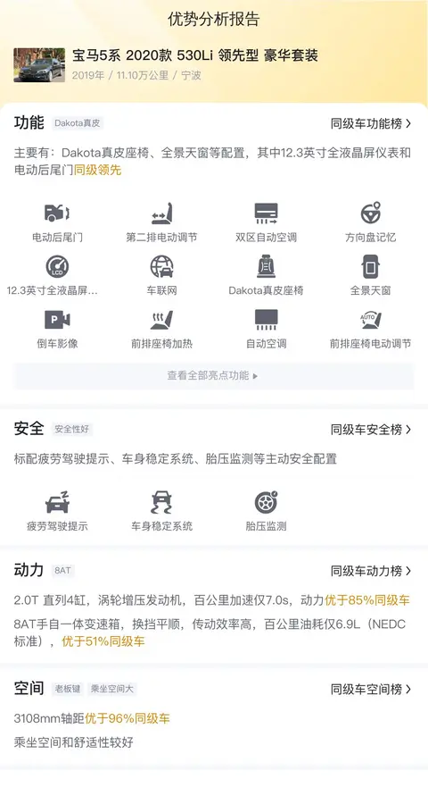 综上所述的新车含税价、用车成本、市场行情、优势分析、同款比价等数据仅供参考。在配置部分,因为二手车非标品,车辆可能会存在配置改装的情况,具体车况信息需要线下结合车辆实际情况进行综合参考。