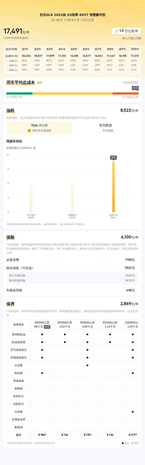 经过对市场的深入分析,我们估测出这辆别克GL8 2022款 ES陆尊 653T 智慧豪华型的平均用车成本大约为每年16607元。这一估算是基于合理的油耗水平、正常的保养频率以及适中的保险费用等因素综合得出的。值得注意的是,实际用车成本可能会根据车主的驾驶习惯、车辆使用强度以及地区消费水平等因素有所波动。但对于大多数寻求高品质出行体验的消费者而言,这一成本预估仍然处于可接受范围内,使得这辆GL8成为商务与家庭用车的理想选择。