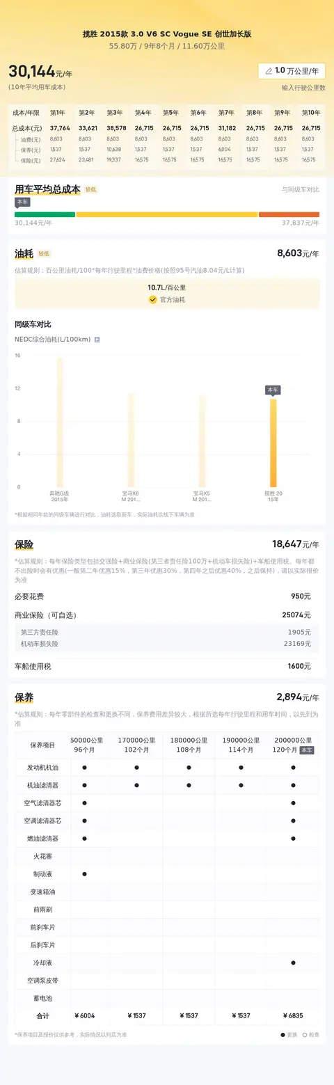 当前市场上,这款车型的二手车行情大致在46万至70万之间。当然,具体的成交价格会受车辆状况等因素的影响。关于用车成本方面,根据估算,这辆车的年均综合用车成本大约为3万元左右。这里值得一提的是,实际用车成本可能会因多种因素而有所不同。