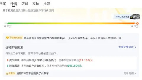 接下来,我们来聊聊这辆二手别克GL8的价格。目前,这款车的二手车行情大致在20万至26万之间。具体的价格因车辆的车龄、里程、保养状况等因素而异。作为对比,咱们今天要说的这辆别克GL8二手报价为23.58万元。在这儿要说的是,车辆的实际成交价取决于很多因素,像使用年限啊、行驶里程啊、车辆保养状态啊等等,特别是车况,那可是决定成交价格的关键因素。