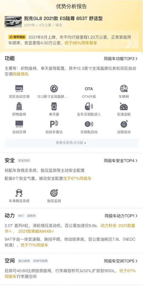 综上所述的新车含税价、用车成本、市场行情、优势分析、同款比价等数据仅供参考。在配置部分,因为二手车非标品,车辆可能会存在配置改装的情况,具体车况信息需要线下结合车辆实际情况进行综合参考。