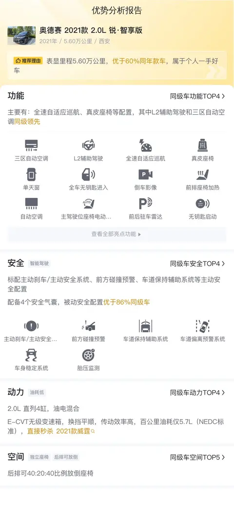 综上所述的新车含税价、用车成本、市场行情、优势分析、同款比价等数据仅供参考。在配置部分,因为二手车非标品,车辆可能会存在配置改装的情况,具体车况信息需要线下结合车辆实际情况进行综合参考。