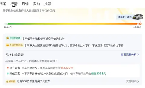 当前这款二手别克GL8的市场行情价在14万至17.8万元之间,报价会受到里程、车龄、过户次数和外观颜色等因素的影响而有所不同。具体的价格细节将在后文中为您详细分析。根据估算,这辆二手别克GL8的年均综合用车成本约为1.5万元,具体金额还需根据车辆实际使用情况和保养情况来确定。