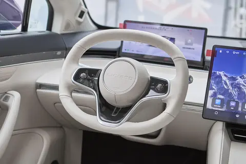 智界R7的内饰风格简约而不失时尚感,游艇式环抱座舱设计提升了车内的高级感。车内大部分地方都采用了皮质材料进行包裹,触感细腻,提升了乘坐的舒适度。内饰配色方面,提供了白沙杏、琥珀棕、雀羽红、松露棕四种配色供消费者选择。车内配备了两块大屏幕,分别是12.3英寸的全液晶仪表盘和15.6英寸的悬浮中控屏,科技感十足。内置HarmonyOS车载智能系统以及基于大模型的小艺语音助手等功能,为驾驶者提供了全方位的智能交互体验,支持语音助手、远程控制、智能导航等功能,使得驾驶者在行车过程中能够更加便捷地获取信息、控制车辆。