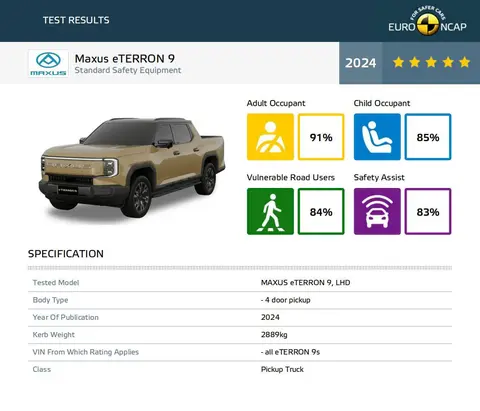 近日,2024年最新一期欧洲Euro NCAP(欧洲新车安全评鉴协会)安全碰撞测试结果公布,中国上汽大通出口欧洲市场的eTerron 9获是“五星安全”评级,并成为首款且唯一一款获此殊荣的纯电皮卡。