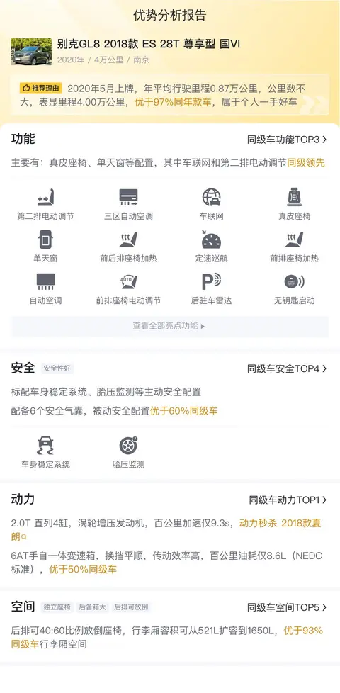 据估算,别克GL8 2018款 ES 28T 尊享型 国VI的用车成本是15704元/年,同级车最低是15266元/年,最高是18886元/年,所以它的用车成本偏低。