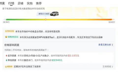 别克GL8 2018款 ES 28T 尊享型 国VI的市场行情价是18.36万-22.86万,它的报价则是17.58万,报价低于市场行情,同时和同级车相比,价格也很占优势。