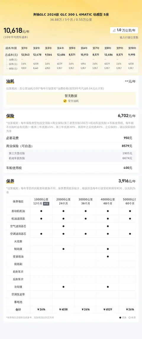 根据当前市场行情,这辆二手奔驰GLC 2024款 GLC 300 L 4MATIC 动感型 5座的售价在34万至40万之间。当然,具体的售价还要根据车辆的车况、里程、车龄等因素综合考虑。作为专业的车商,我们提供的价格都是基于市场情况和车辆实际情况给出的合理定价。关于用车成本方面,我们将通过图片向您展示这辆车的平均用车成本以及与同级别车型的对比情况。