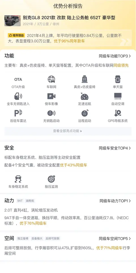 优势:空间大,乘坐舒适,适合全家出行,动力充沛,市场保有量大,保值率高,品质出众,故障率低,售后服务完善,可以放心使用。