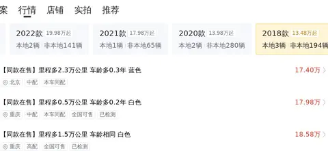 目前的二手车市场,该车型的价格区间大致在15万至19万左右。最终的售价会受诸多因素的影响,包括车龄、里程、保养状况等,准确定价需结合具体的车况评估。在用车成本方面,预估年均综合用车成本约为1.5万元,但实际支出可能会因使用强度、保养习惯等因素有所变动。
