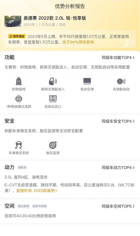 综上所述的新车含税价、用车成本、市场行情、优势分析、同款比价等数据仅供参考。在配置部分,因为二手车非标品,车辆可能会存在配置改装的情况,具体车况信息需要线下结合车辆实际情况进行综合参考。