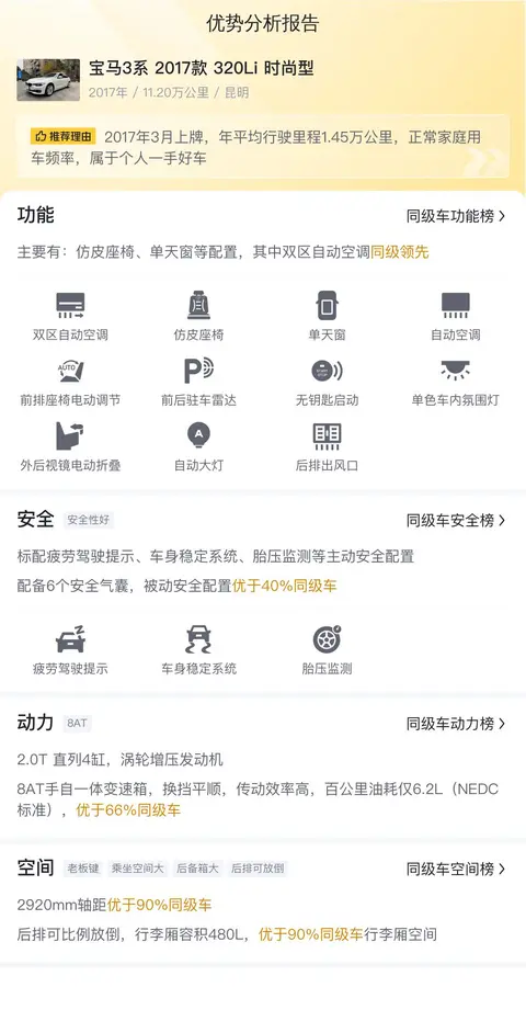 综上所述的新车含税价、用车成本、市场行情、优势分析、同款比价等数据仅供参考。在配置部分,因为二手车非标品,车辆可能会存在配置改装的情况,具体车况信息需要线下结合车辆实际情况进行综合参考。