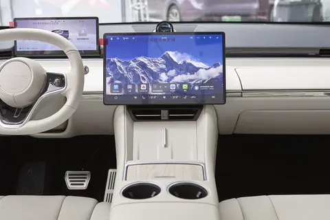 内饰方面,智界R7也表现得相当优秀。与特斯拉Model Y的“毛坯房”风格不同,智界R7的内饰在电控硬件上显得更加丰富。中控部分的15.6英寸车机屏和12.3英寸仪表屏形成的双连屏,让整个内饰充满了科技感,仿佛把你带入了未来世界。而且,智界R7的其他版本还配备了一个8.2L的车载冰箱,支持3-50℃的广域温控,想喝什么饮品都能随心所欲,真是个贴心的设计。