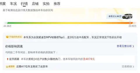 别克GL8 2021款 ES陆尊 653T 旗舰型的市场行情价位在25.6万至31.91万之间。然而,请务必留意,每一辆二手车都是独一无二的存在,其车况各异,从而价格也会有所不同。就本车而言,考虑到它比同类车型行驶里程少、车龄短、过户次数少以及颜色更受欢迎等因素,初步估算,如果车况保持良好,预计再行驶两年后,其售价大约在17万左右。当然,这只是预估价格,具体还要看届时的车况表现。